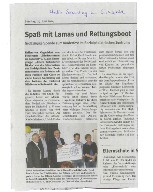 Spendenkonto: Sparkasse Eichsfeld IBAN: DE13 8205 7070 0400 0021 67, BIC HELADEF 1EIC